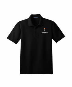 5.6-ounce, 60/40 cotton/poly. Includes double-needle stitching throughout. Flat knit collar and 3-button placket with dyed-to-match buttons. Features open hem sleeves and side vents.
